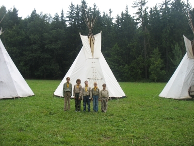 82 . oddíl Tee-pee Tábor - Čekanice je smíšeným oddílem pro chlapce i děvčata ve věku od šesti do sto šesti let.
